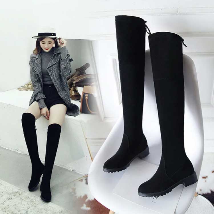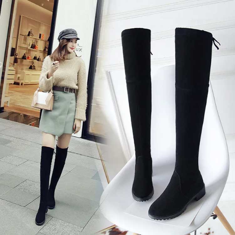 ニーハイブーツ リボン 甲高 美脚 ス