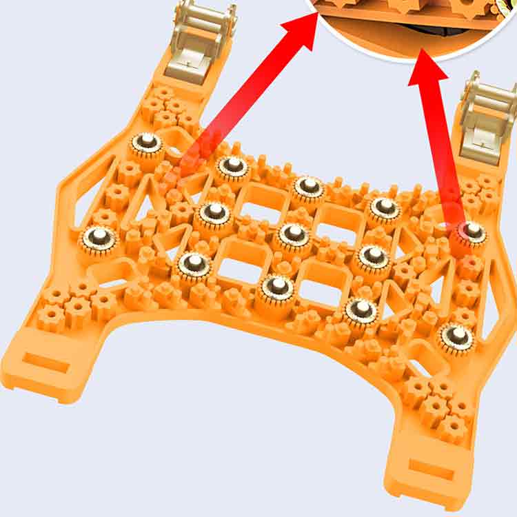 【滑りに強いスチールピン使用】耐低温・耐久性に優れるスチールピン使用。雪や氷の路面とのグリップ力も最大限に発揮でき、ラクに運転できます。 また接地面全面に凹凸加工されており、アイスバーンなどでの機動力を発揮します。
