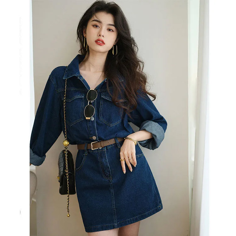 タイト レディース 長袖 デニム タイ