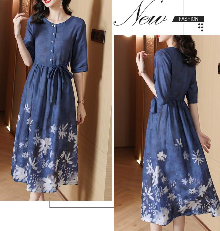 ワンピースロングワンピース花柄リネン綿