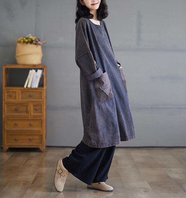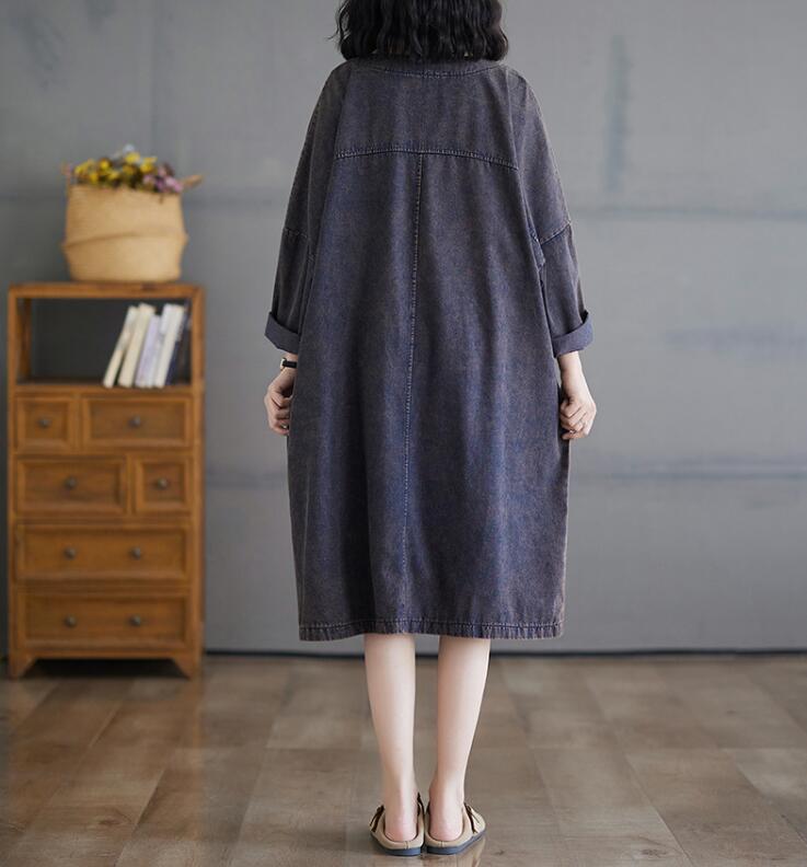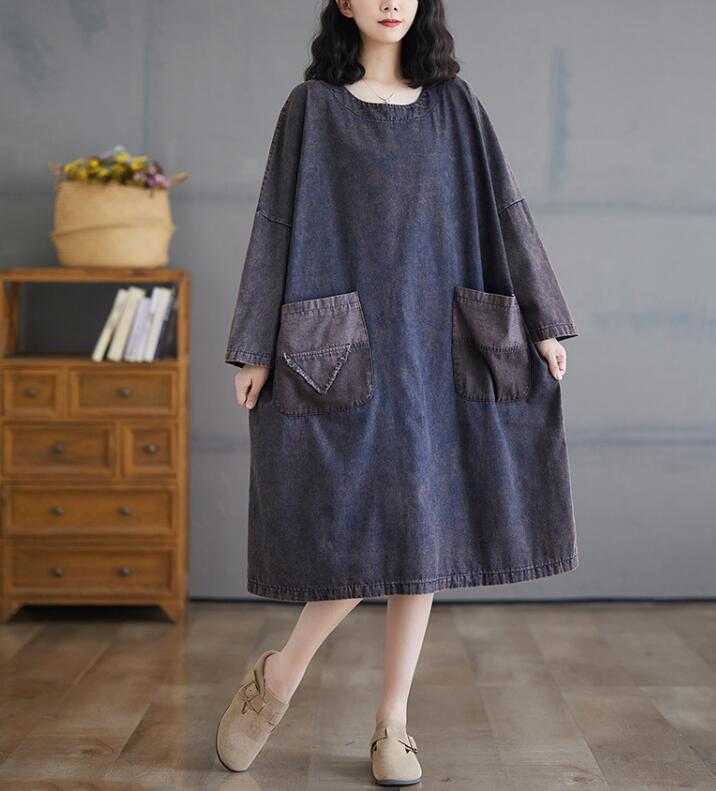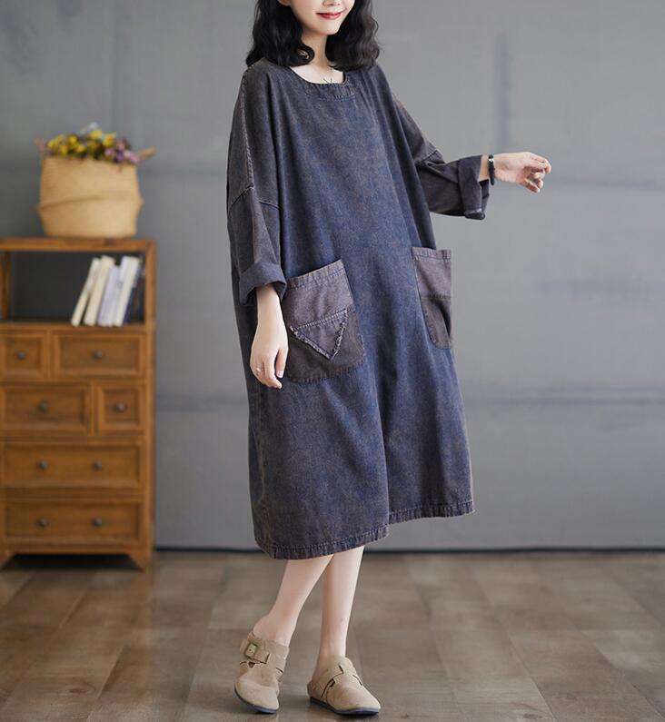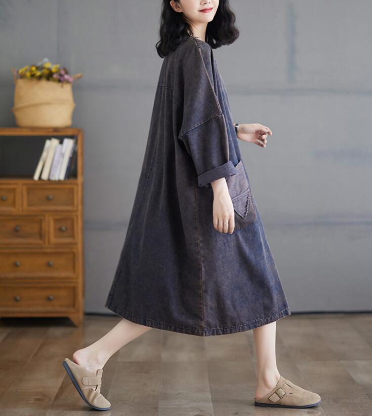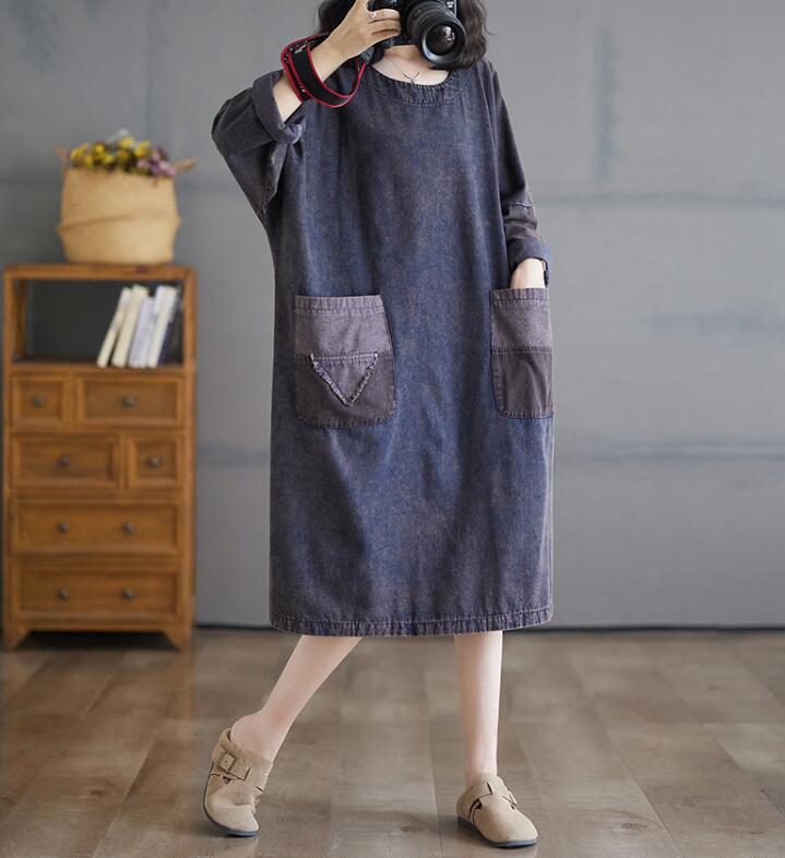 デニムワンピースレディース ミモレ丈長