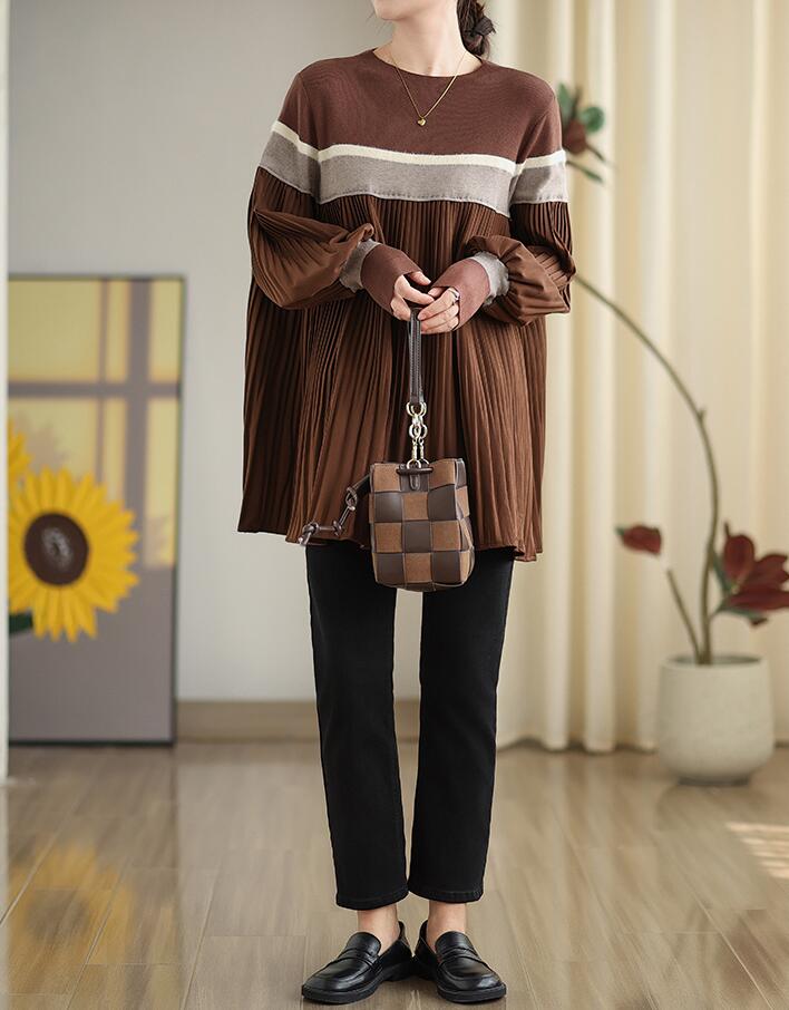 ニットチュニック プリーツニットセータ