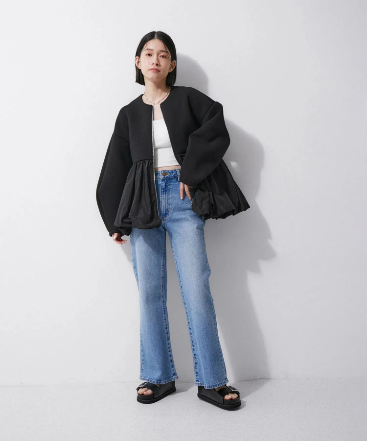 シアースリーブ ドッキングシャツ ボウタイシャツブラウス