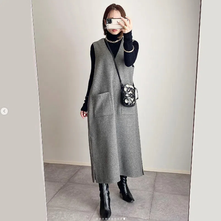 ロング ノースリーブ ワンピース レデ