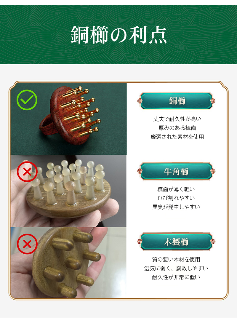 頭皮マッサージ ブラシ 黄銅 真鍮 ヘ