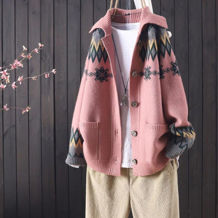 襟付き ロングカーディガン レディース