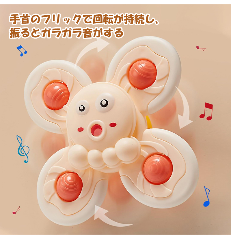親子のインタラクティブ: 回転する風車は、子供たちの注意を引き付け、ゲームに子供たちの興味を喚起し、子供たちの感情的な圧力を軽減することができます。吸盤付きハイチェアおもちゃは、食事中、入浴中、睡眠中などに泣いている赤ちゃんに役立ちます。