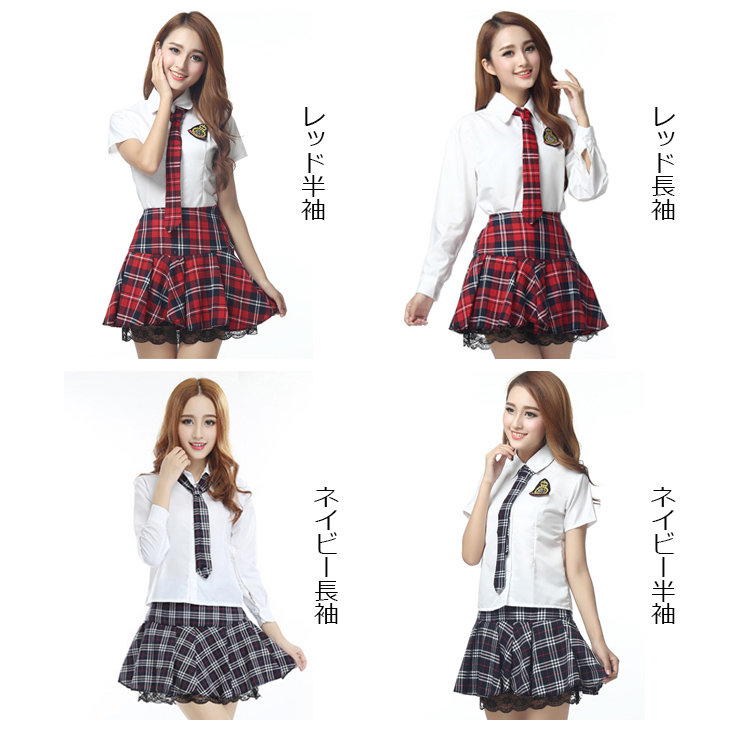 コスプレ ネクタイ付けシャツ&チェック柄プリーツスカート スクール制服 コスプレ衣装 AKB セーラー服 JK 学生服 パーティや仮装に大活躍☆可愛いセーラー服が新登場♪