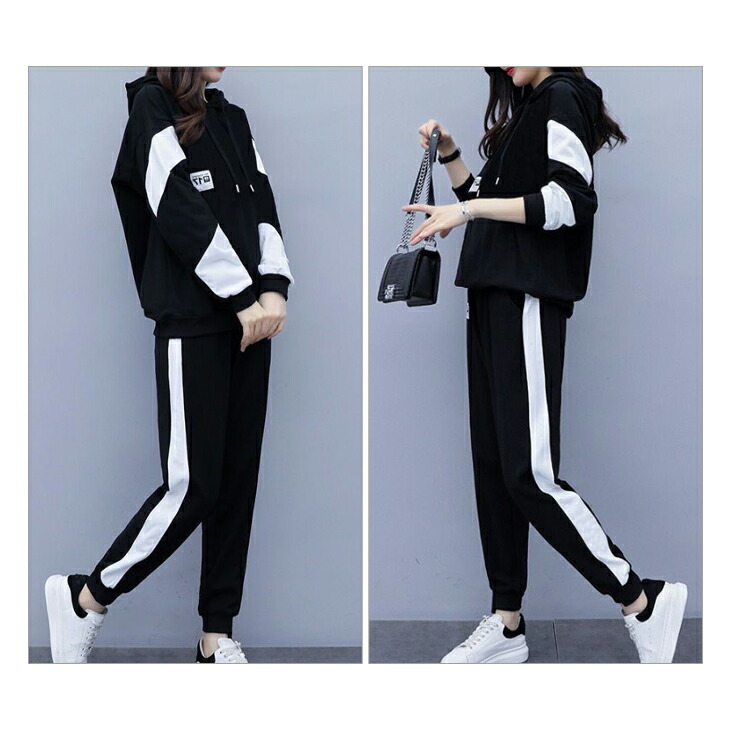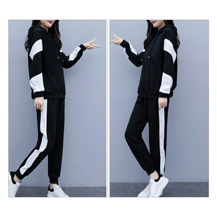 ジャージ セットアップ 上下セット レディース 長袖 長ズボン フード付き ナイトウェア 薄手 スポーツウェア ダンス ダンスウェア ランニング