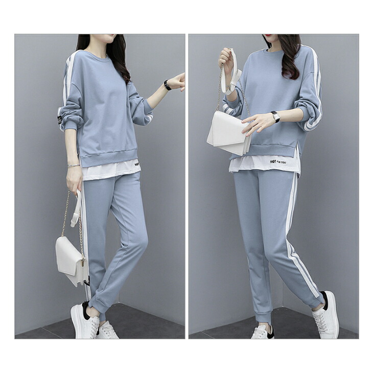 二本ライン レイヤード風でスポーティな上下セットアップが新登場☆レディースファッション トップス スウェット トレーナー