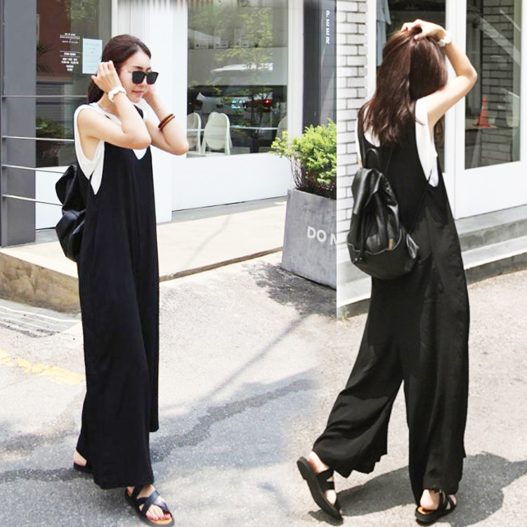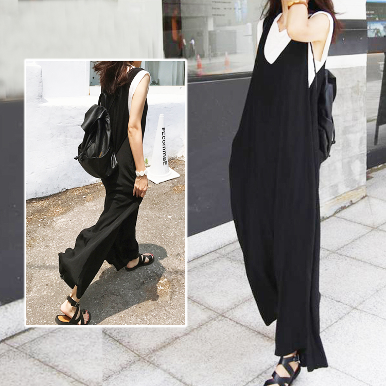 2カラー 5サイズ L XL 2XL 3XL 4XL Vネック大人サロペット ワイドパンツ Vネック オーバーオール ボトムス ロングパンツ ブラック ネイビー 無地 シンプル 体型カバー