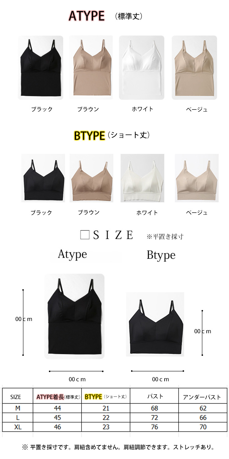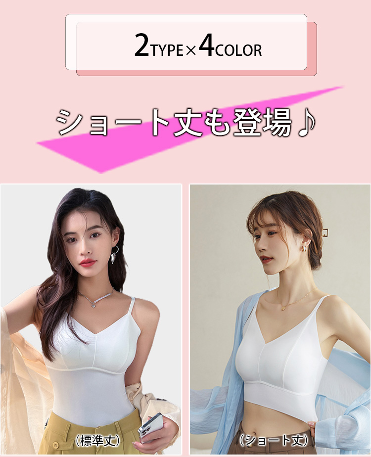 選べる丈感 キャミブラトップ パッド一体型 冷感 ブラトップ ショート丈 ロング丈 インナー パッド付き 美しく盛れる 楽々 盛れる