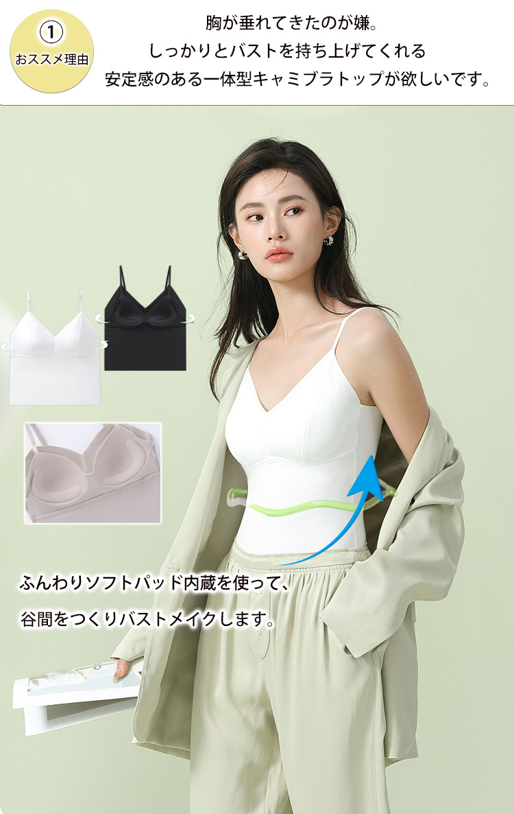 選べる丈感 キャミブラトップ パッド一