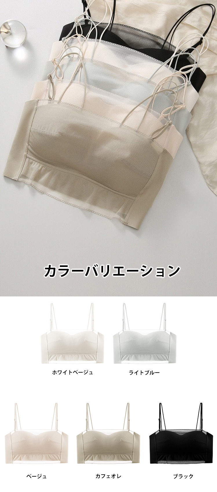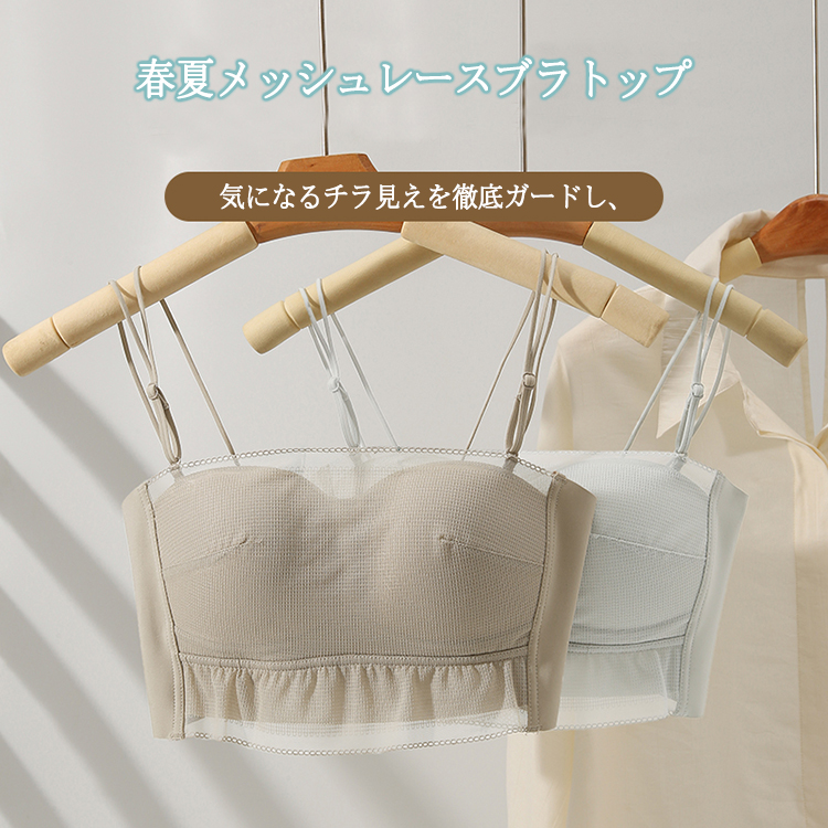 冷感 レース ブラトップ カップ付き ブラキャミ ノンワイヤー チューブトップ 胸元カバー レース キャミソール カップ付き 冷感 へそだし インナー パッド一体型