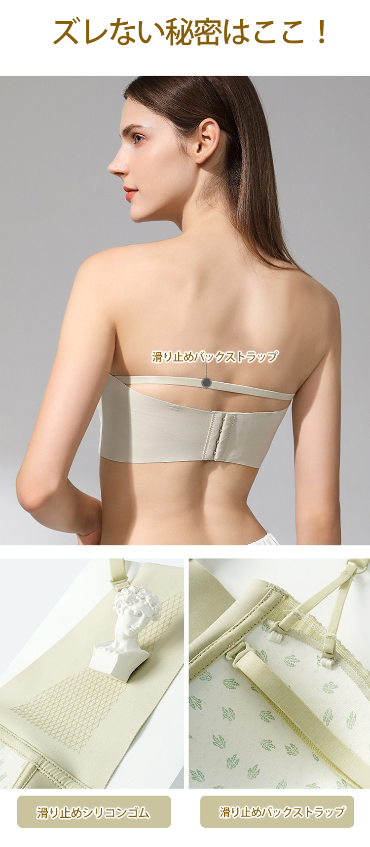 ノンワイヤー ブラトップ キルティング風 美胸 カップ付き ブラキャミ ストラップレス バックストラップ 単品 ノンワイヤー チューブトップ ズレ防止 キャミソール カップ付き
