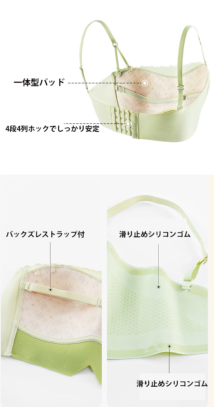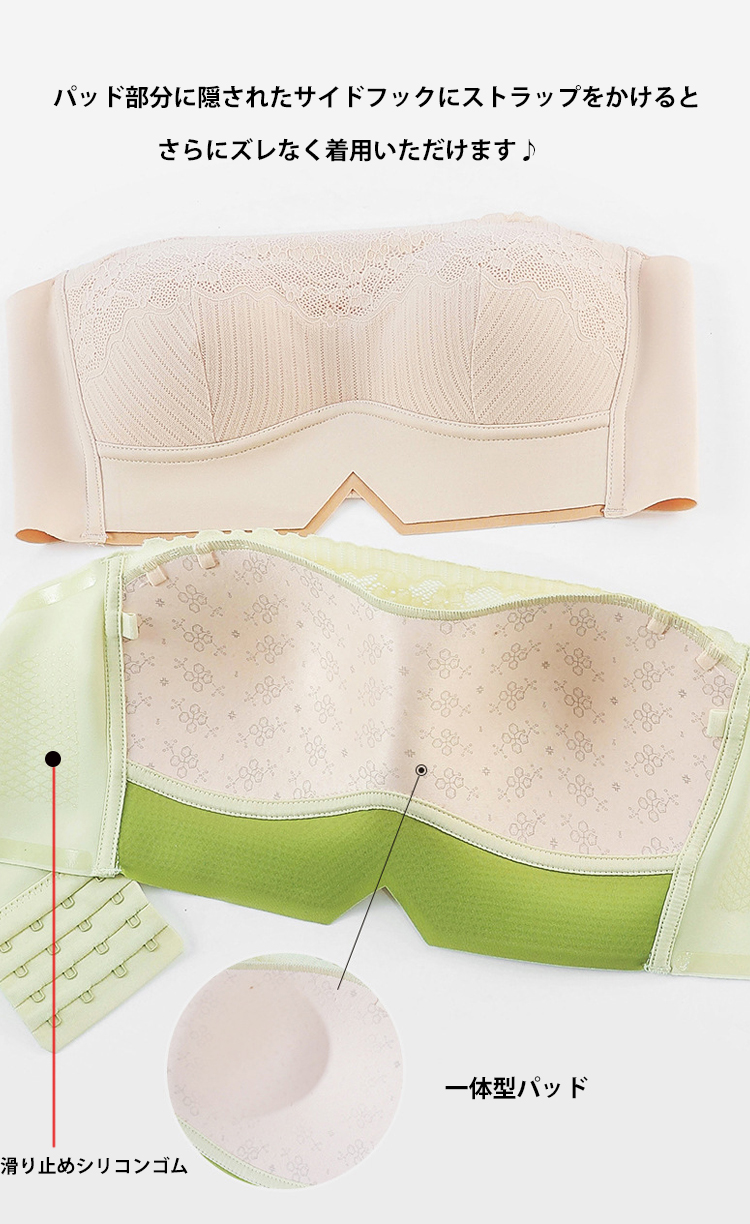 ノンワイヤー ブラトップ カップ付き 刺繍 美胸 ブラキャミ ストラップレス バックストラップ 単品 ノンワイヤー チューブトップ ズレ防止 滑り止め