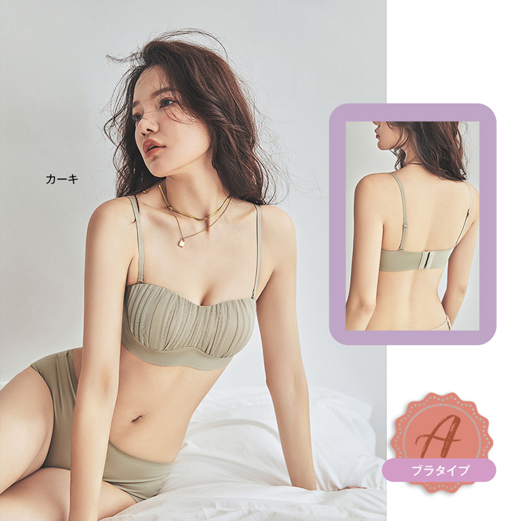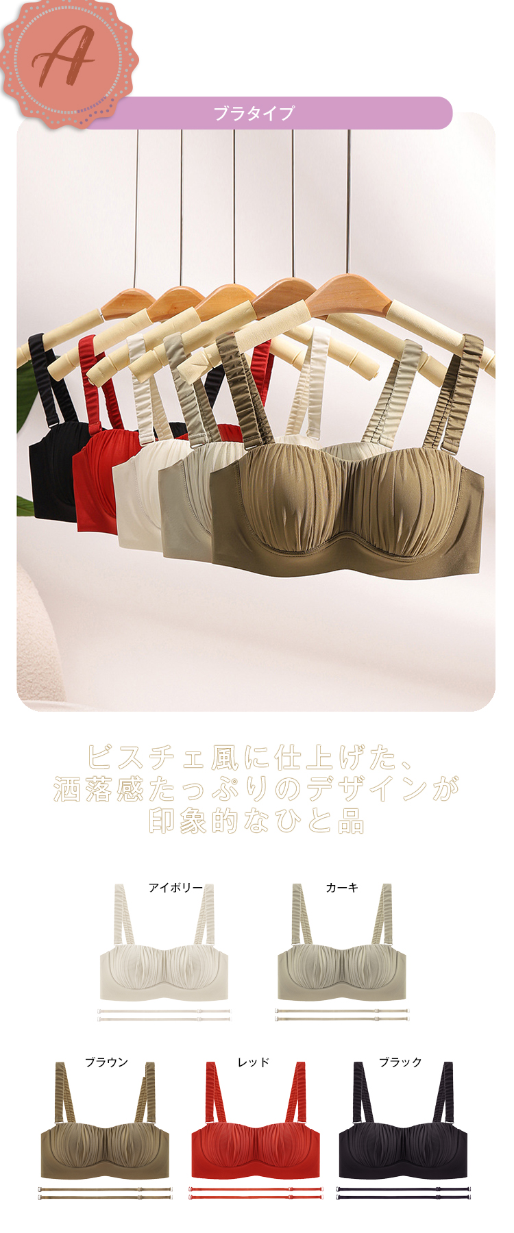 02: A:(ブラ)-アイボリー A:(ブラ)-カーキ A:(ブラ)-ブラウン A:(ブラ)-レッド A:(ブラ)-ブラック B:(キャミソール)-アイボリー B:(キャミソール)-カーキ B:(キャミソール)-ブラウン B:(キャミソール)-レッド B:(キャミソール)-ブラック