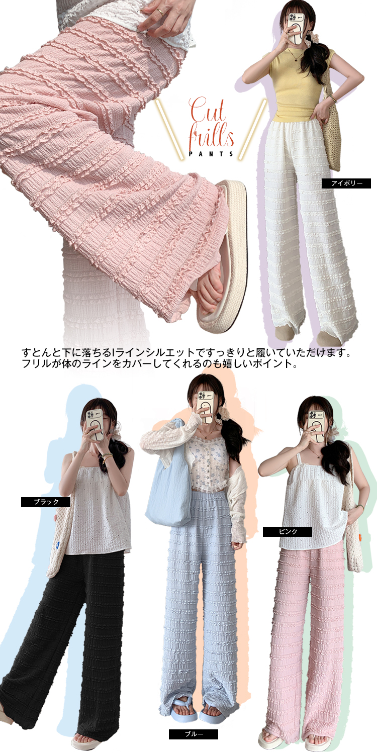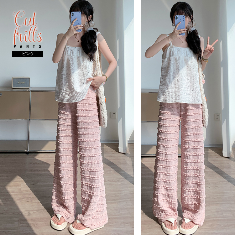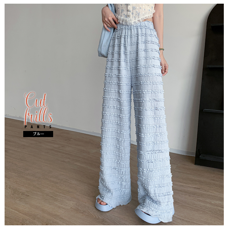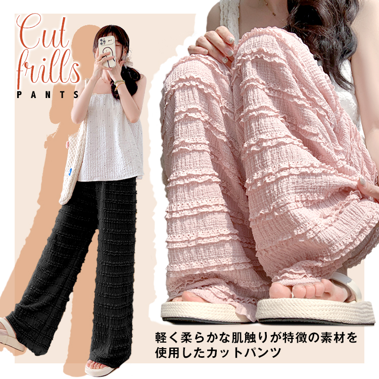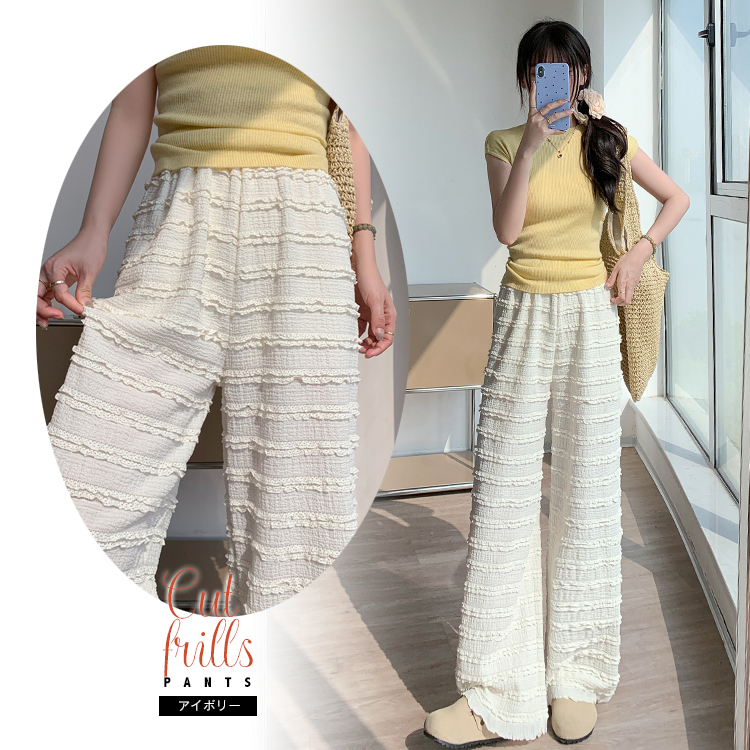 カットフリル ワイドパンツ レディース
