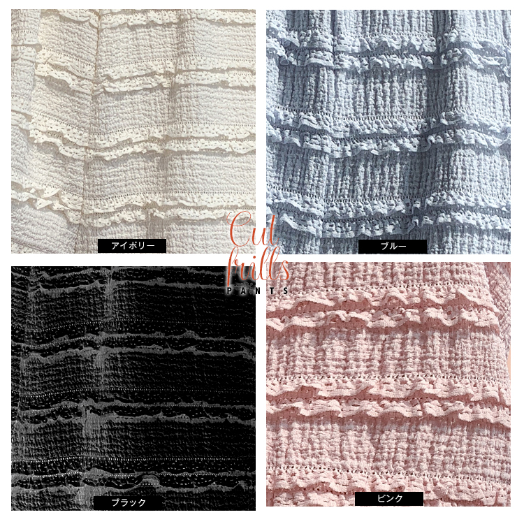 ボディラインを拾わないラインが特徴のフリフリパンツ。