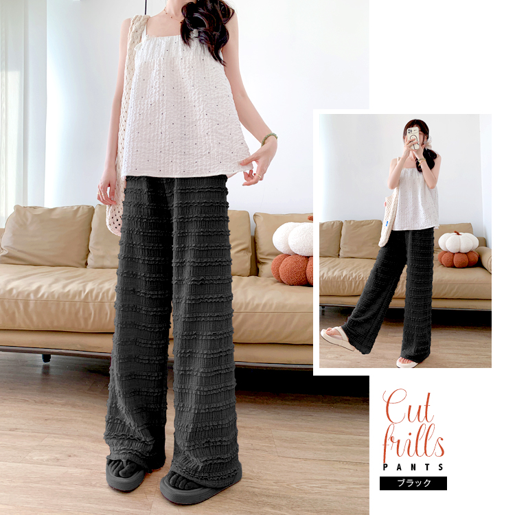 ■柔らか素材で楽ちん。フリルカットワイドパンツ■
