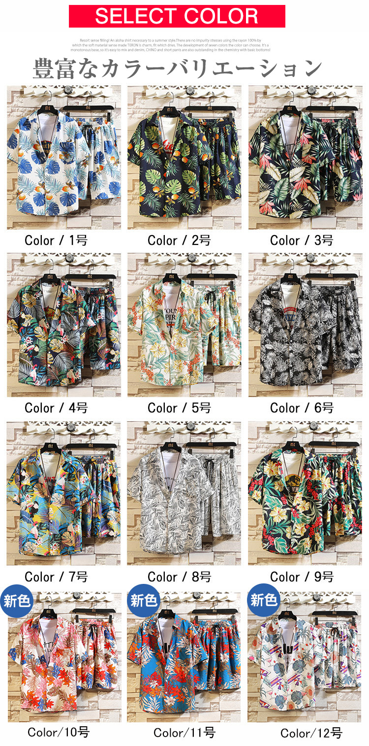※お客様のご覧になられますパソコン機器及びモニタなどの違い、また室内、室外での撮影により実際の商品素材の色と相違する場合もありますのでご了承下さい。商品情報商品名 上下セット アロハシャツ ハーフパンツ 花柄 総柄素材 ビスコース82.5% ナイロン17.5%カラー 1号 2号 3号 4号 5号 6号 7号 9号生産国 中国包装について 環境保護の観点から、「簡易包装」を推進しております明細書について 当店ではエコロジーと個人情報流出防止のため、ご指示の無い限り明細書を発行しておりません。