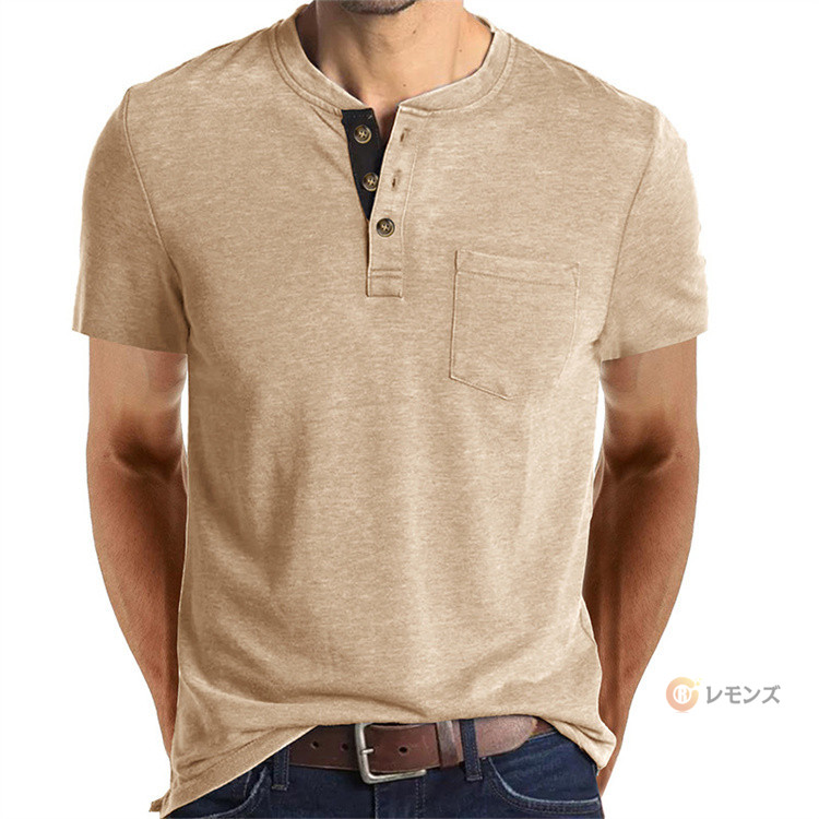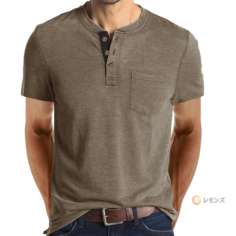 商品名 Tシャツ メンズ ヘンリーネック 半袖 tシャツ 無地 ティーシャツ ヘンリーネックtシャツ ボタン tシャツ カットソー インナーtシャツ 前ボタン Vネック トップス アメカジ ジムウェア 夏服 夏 カジュアル おしゃれ