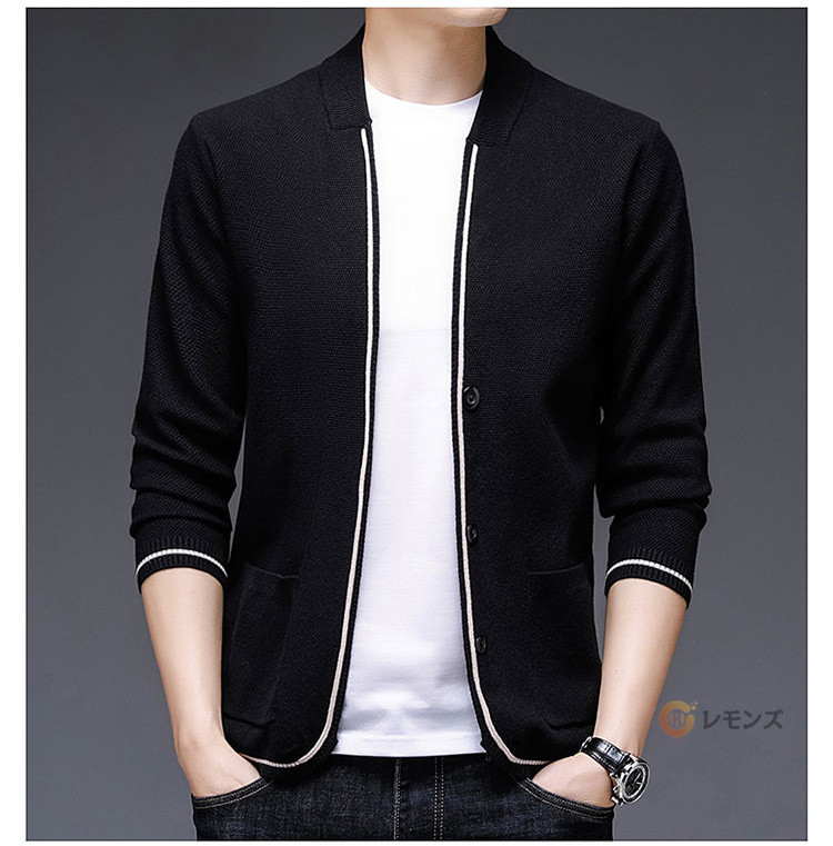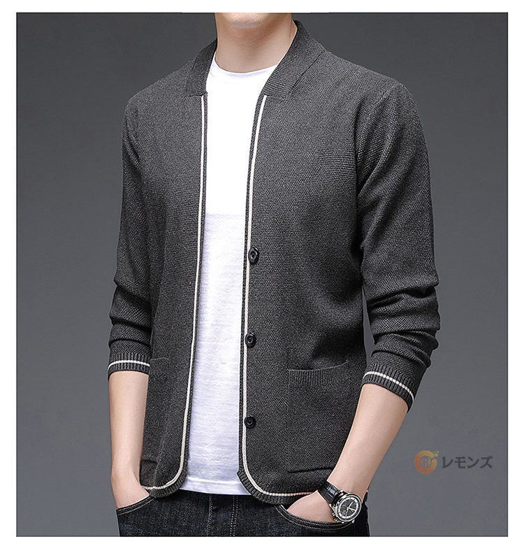 薄手 vネック ニットカーディガン カーデ 無地 長袖 おしゃれ リブ編み ニットジャケットメンズファッション トップス カーディガン