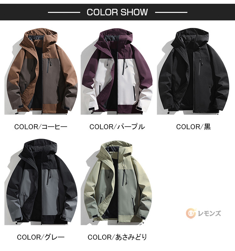 ※※ベルト、飾りやインナーなどは含みません。商品情報商品名 ウインドブレーカー 上 メンズ 撥水加工 マウンテンパーカー レディース マンパー アウトドア ジャンパー ブルゾン アウター オーバーサイズ 薄手 ボリュームネック カジュアル 登山 キャンプ バイク 自転車 大きいサイズ メンズファッション 秋服 春服 配色素材 ポリエステル100%カラー S|M|L|XL|2XL|3XL|4XLサイズ 各サイズの寸法については画像のサイズ表にご参照ください。生産国 中国包装について 環境保護の観点から、「簡易包装」を推進しております明細書について 当店ではエコロジーと個人情報流出防止のため、ご指示の無い限り明細書を発行しておりません。