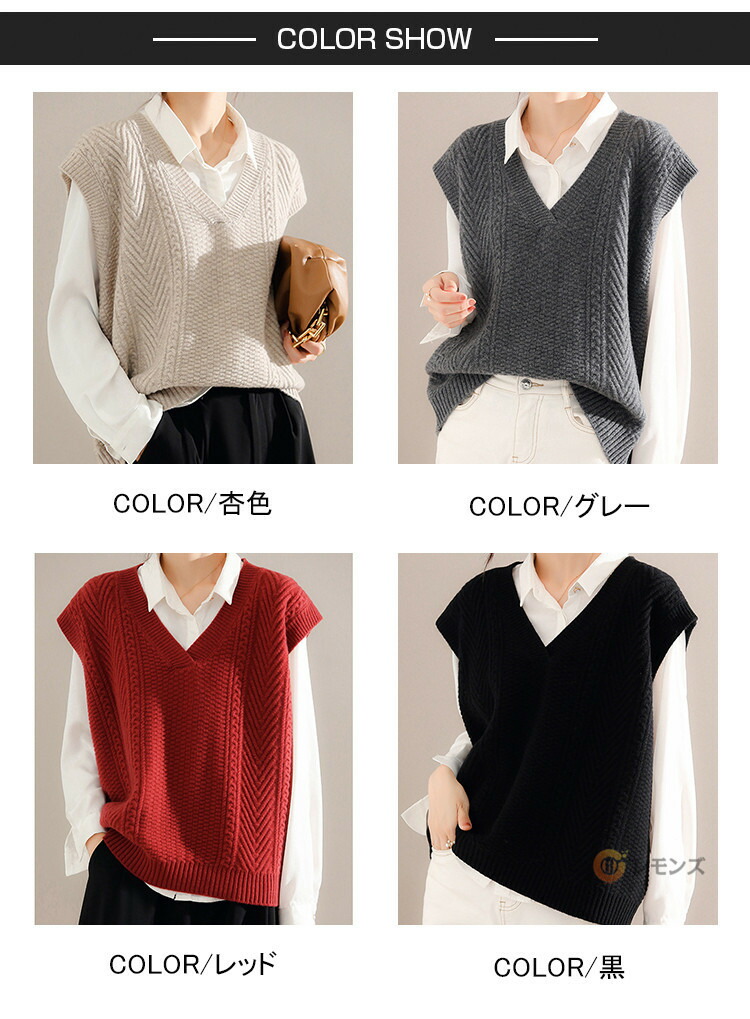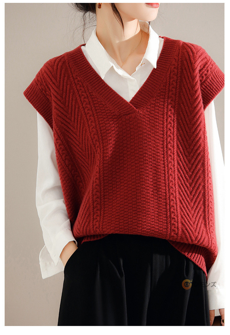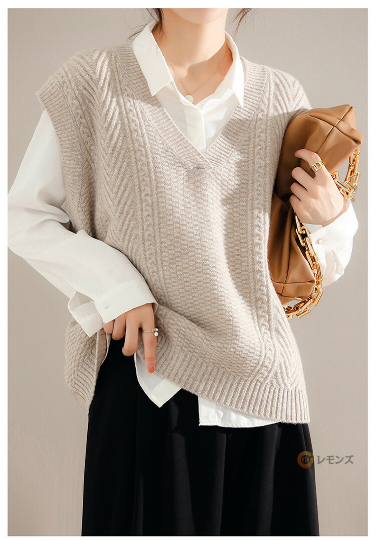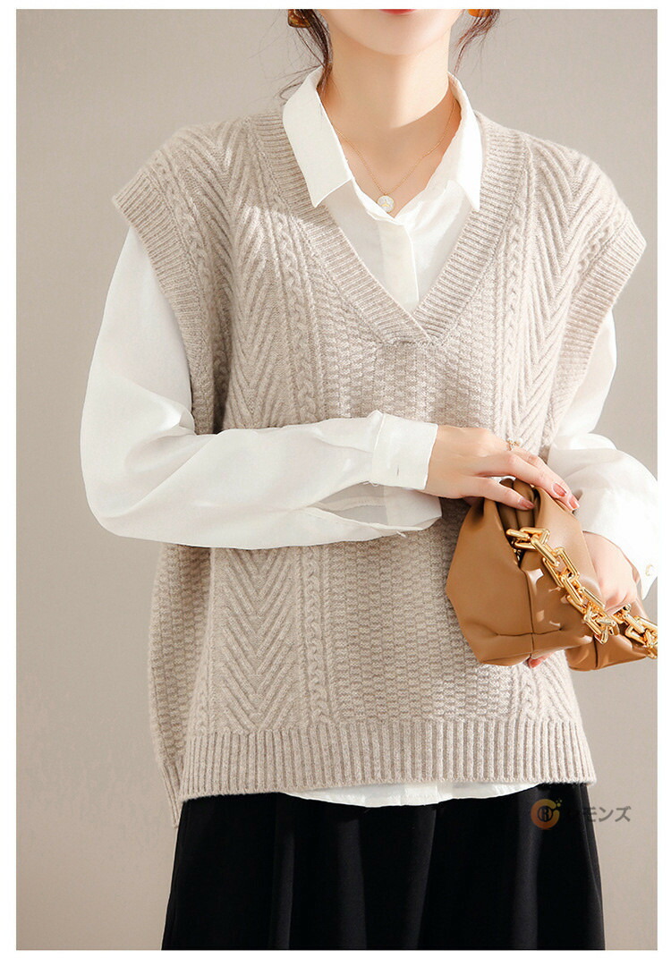 商品名 ケーブルニット ベスト レディース ニットベスト vネック 無地 トップス ケーブル編み ノースリーブ 重ね着 ニット セーター レイヤード ゆったり 大人 カジュアル 春 秋 冬 きれいめ 着こなし 柔らかい 暖かい おしゃれ レディースファッション トップス