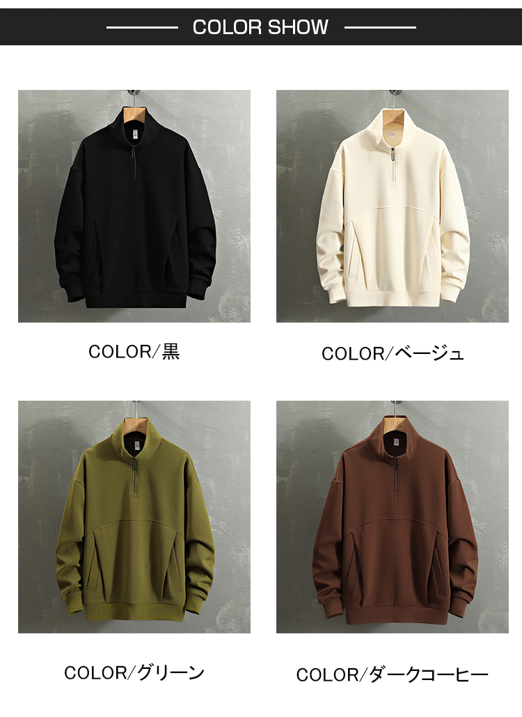 商品名 ハーフジップ トレーナー メンズ ハイネックtシャツ トップス プルオーバー 長袖 トレーナー ゴルフウェア ハーフZIP トレーナー スウェット トレーナー 男女兼用 カジュアル 部屋 大人 ジップアップ 春服 秋服 スタンドカラー ロンT