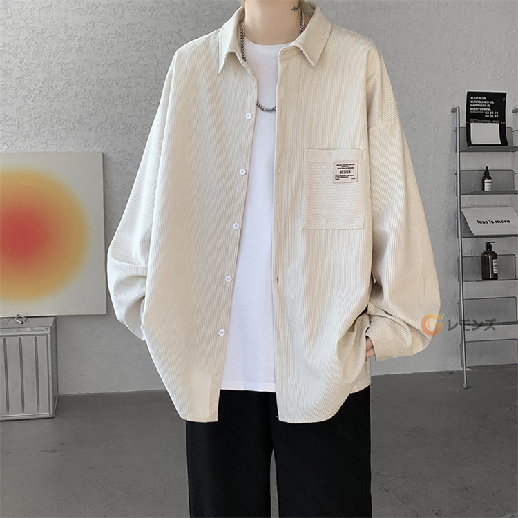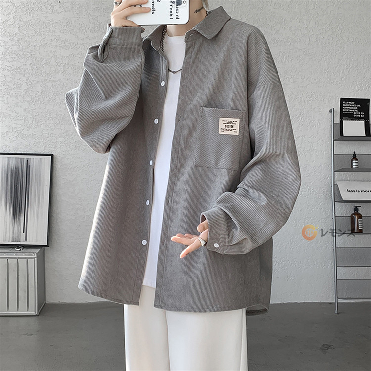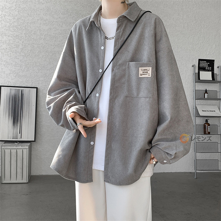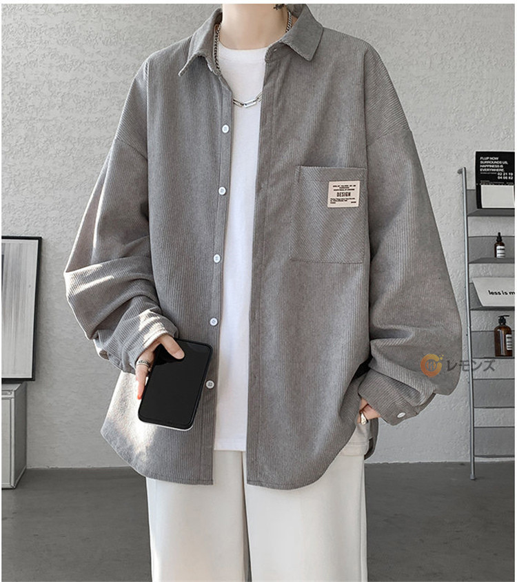 商品名 コーデュロイ シャツ メンズ カジュアルシャツ 秋服 長袖シャツ ビッグシルエット シャツ オーバーサイズ 胸ポケット シャツジャケット メンズシャツ ゆったり 羽織り 秋物 春服 ブラウス 無地 コールテンシャツ ファッション