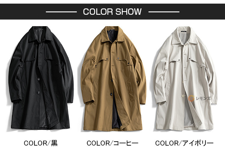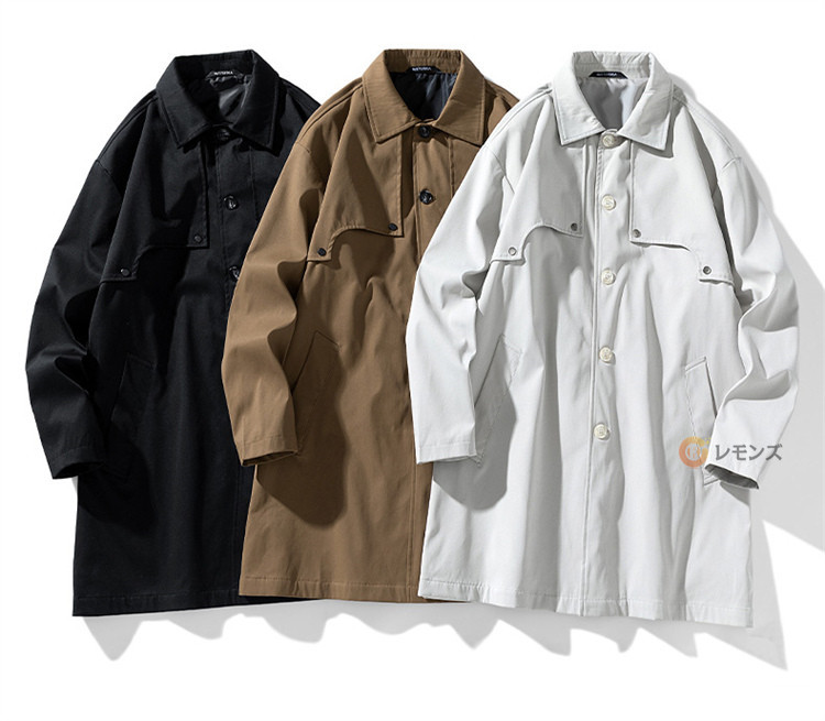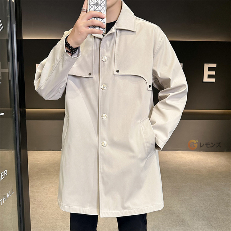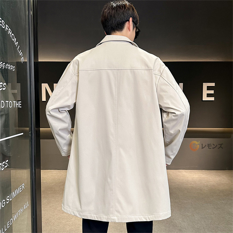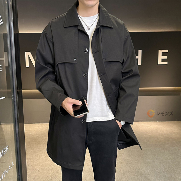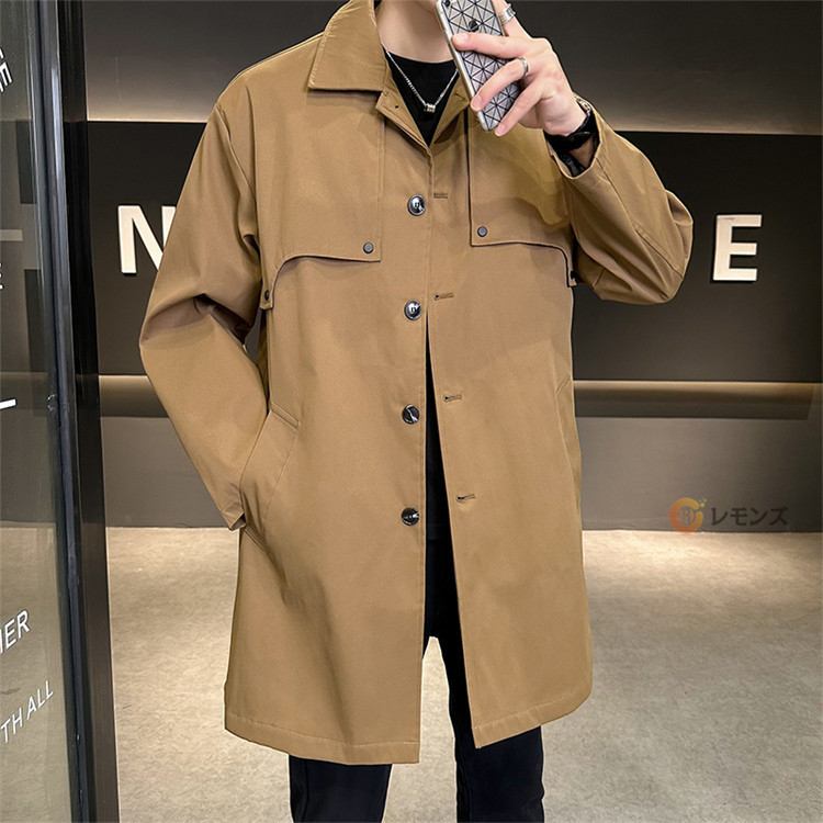 商品名 ステンカラーコート メンズ コート 秋服 スプリングコート アウター ロングコート ジャケット シンプル ビジネスコート メンズコート メンズアウター ミドル丈 膝上 紳士服 通勤 仕事 冬 秋 無地 カジュアル 男性 大きいサイズ 春秋冬
