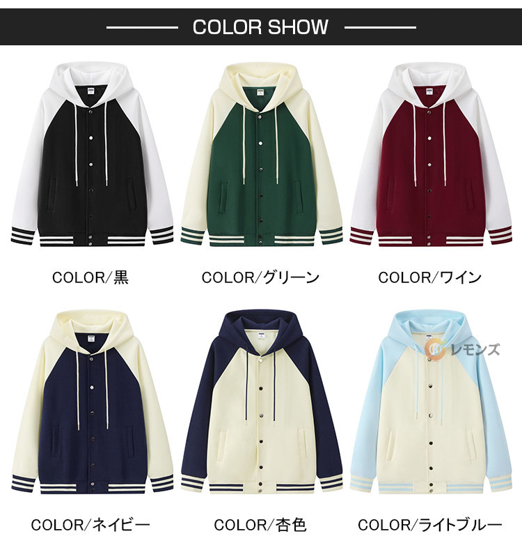 商品名 スタジャン メンズ フード付き ジャンパー おしゃれ 大きいサイズ 配色切り替え スタジアムジャケット レディース ユニセックス スタジアムジャンパー チームジャケット カジュアル ジャケット ブルゾン 秋物 春服 秋服