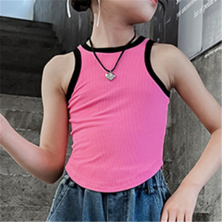 horizontal-key: バラ色タンクトップ グレータンクトップ デニムパンツ