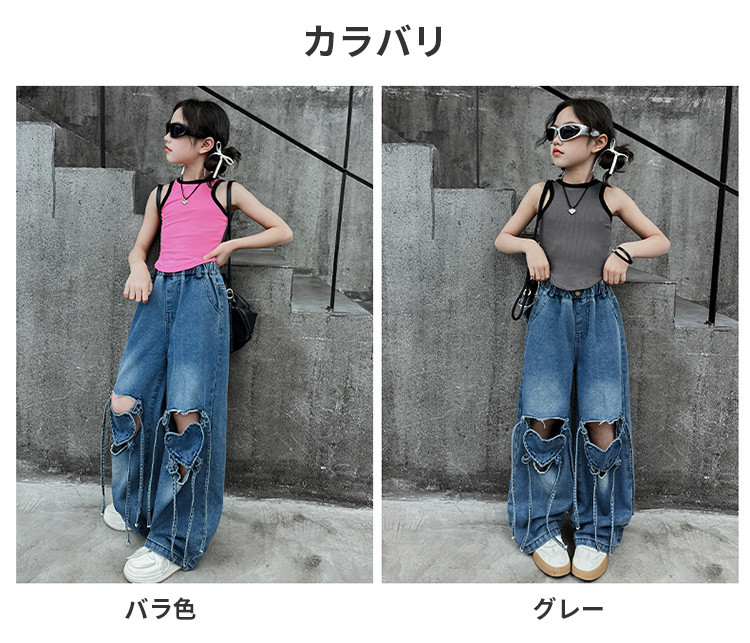 デニム ダメージパンツ ハート タンク