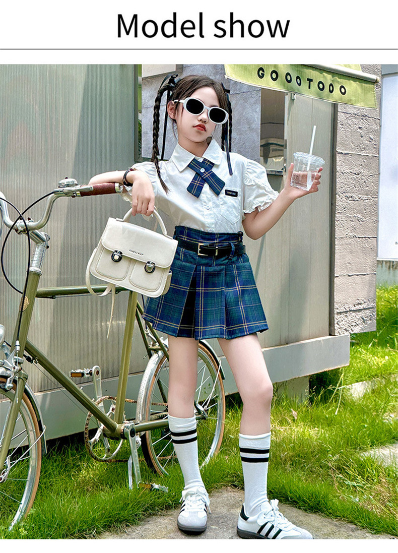 vertical-key: シャツ+リボン スカート+ベルト 4点セット