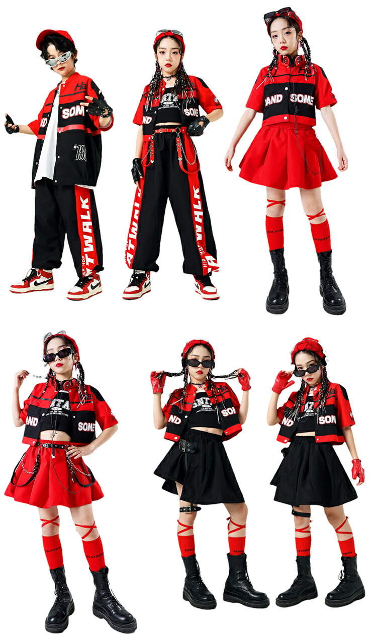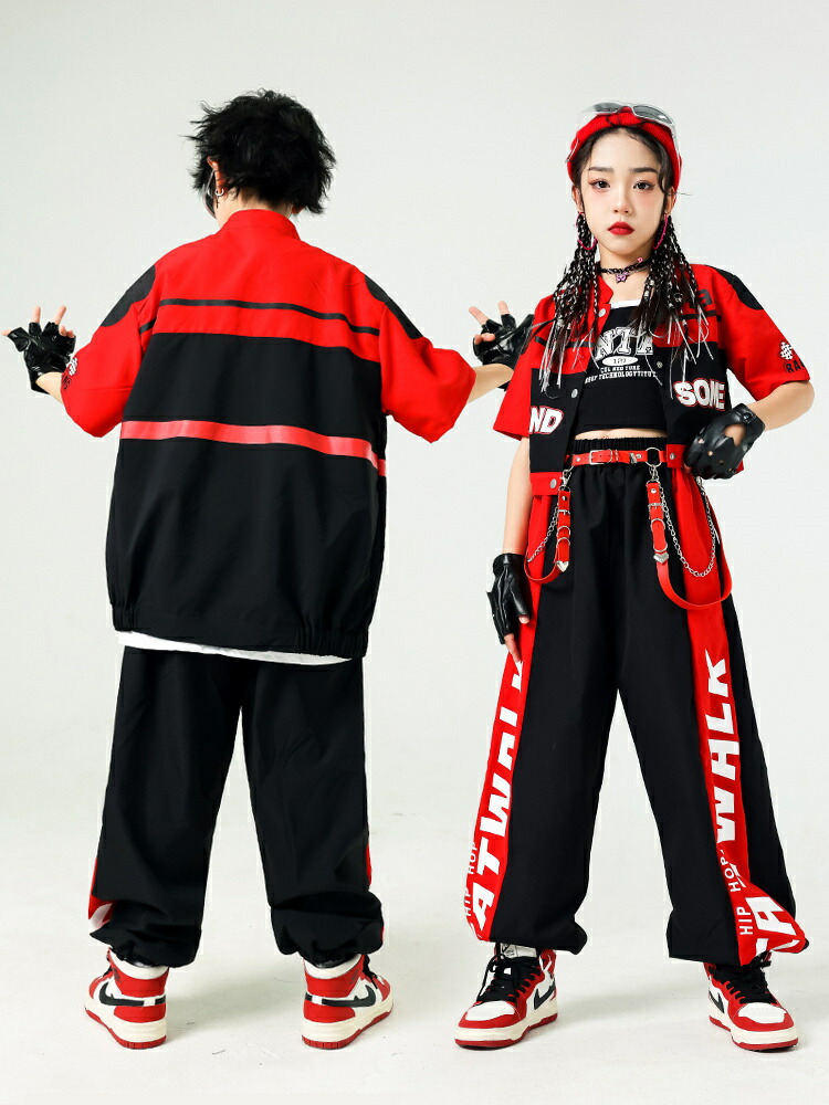 キッズダンス 衣装 黒 赤 レーシング