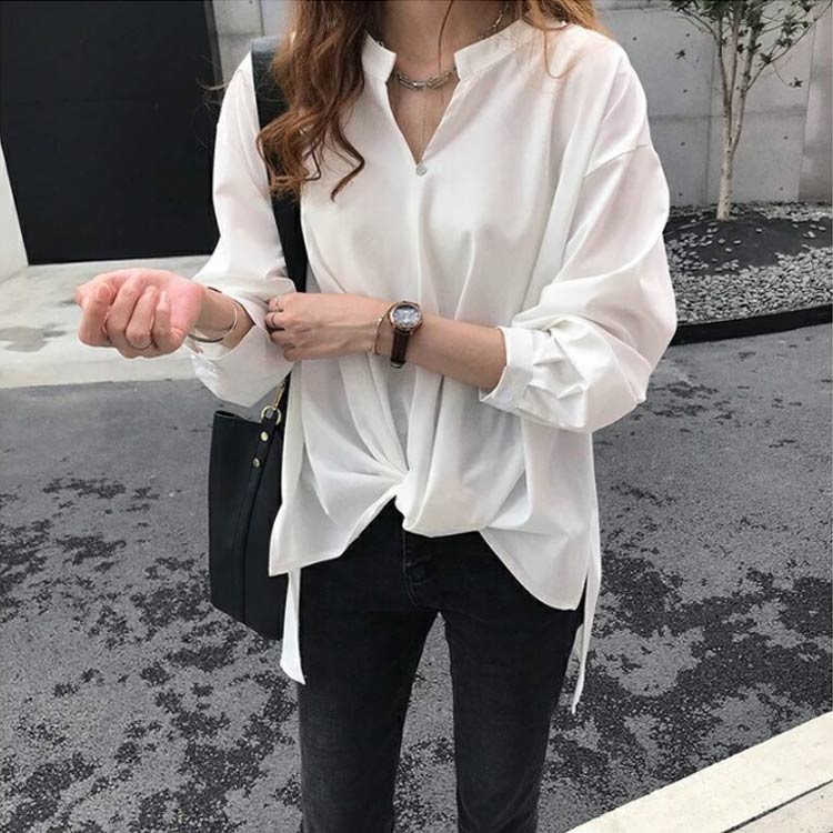 フロントねじりブラウス 長袖シャツ V