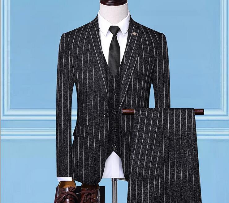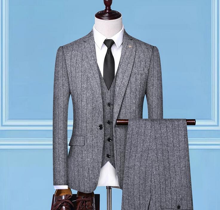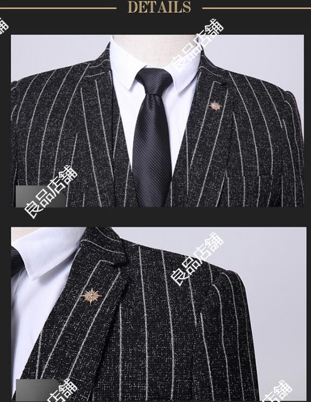メンズスーツ 3ピーススーツ スリムストライプスーツ 紳士用 OL 大きいサイズ タキシードジャケット+ベスト+パンツ 一つボダンスーツ 4色M~4XL