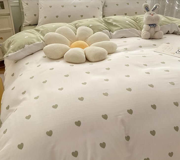 ハート柄 大人気 4色 新生活 韓国風 3点セット 寝具カバーセット 掛け布団 ベッド用品 1.2m フラットシーツ ボックスシーツ シングル セミダブル ダブル 4点セット1.5m 1.8m