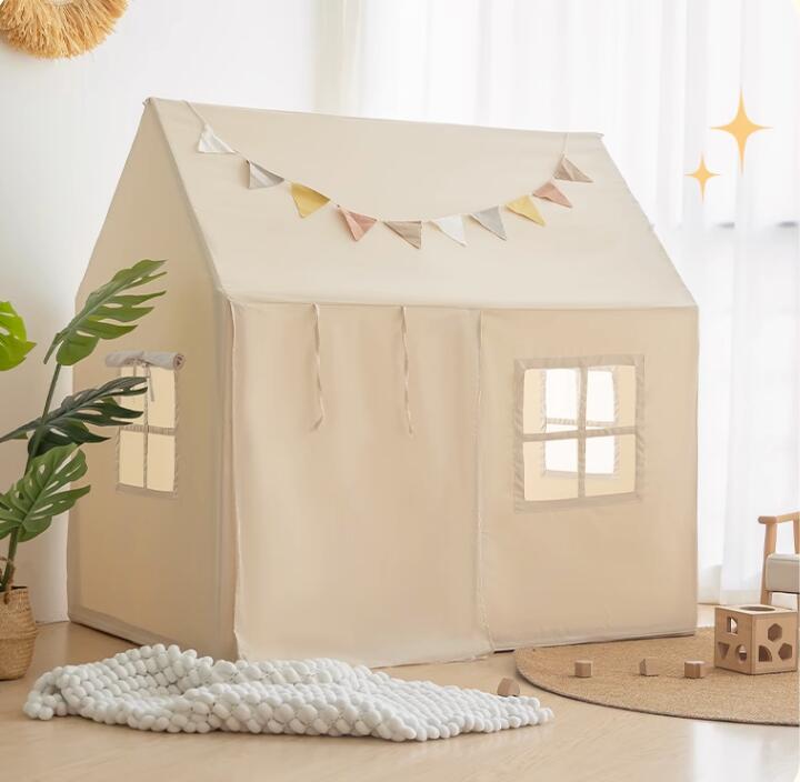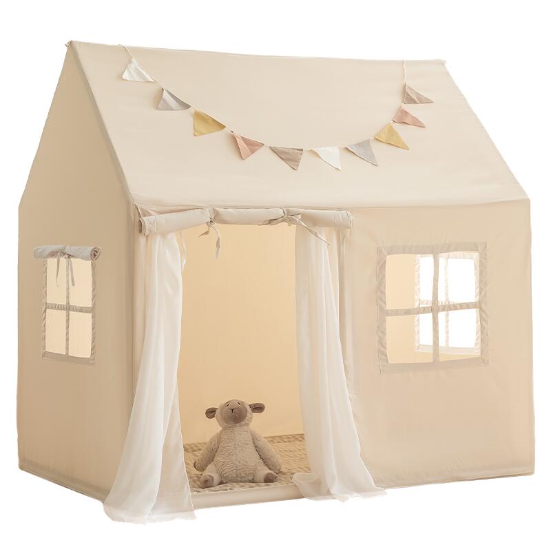 キッズテント 子供部屋 プレゼント 子供テント キッズ プレイテント 組み立て簡単 室内室外 小屋 厚手フロアマット カーテン 旗 PVCブラケット 窓つき 通気性 扉つき