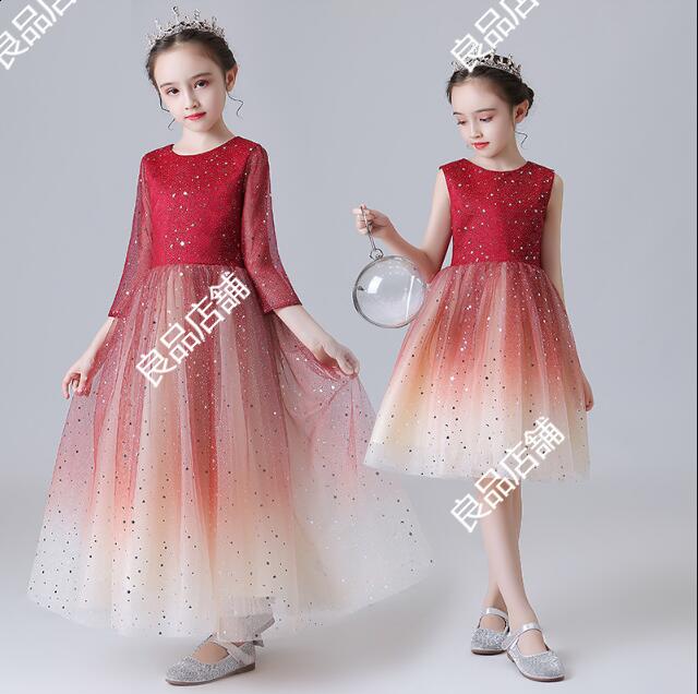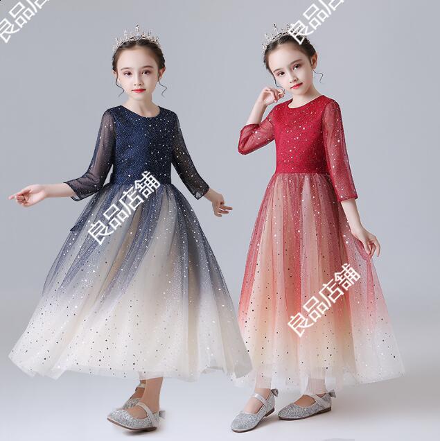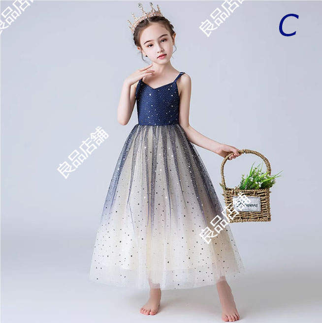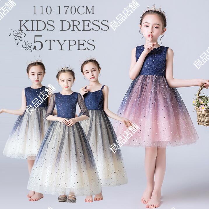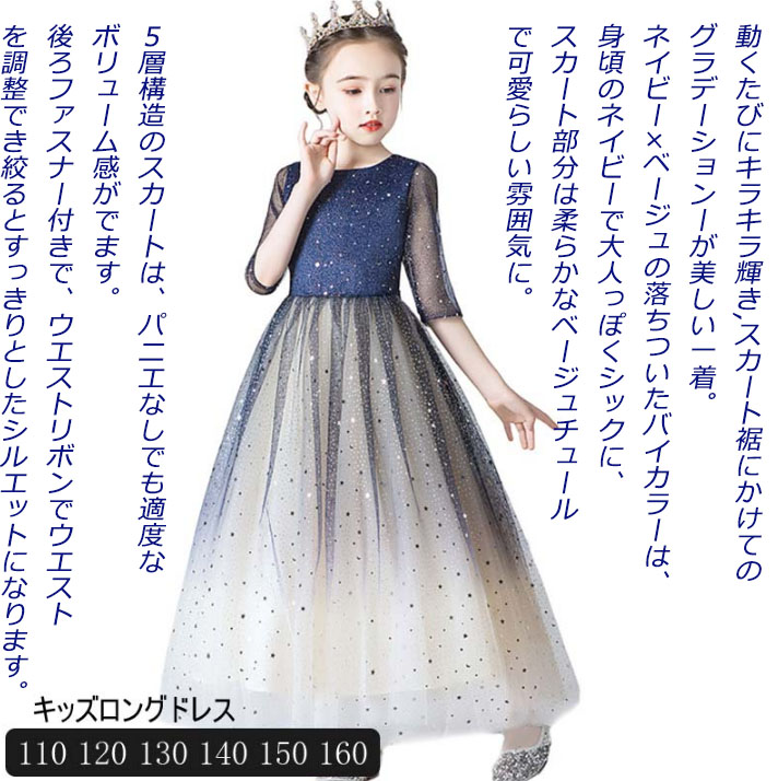 4色 ピアノ発表会ドレス ロングドレス 子供ドレス サテン 女児ドレス ブルー 女の子ドレス 演奏会 キッズドレス ノースリーブ 110~170 子供フォーマル ティアラ キッズ ドレス