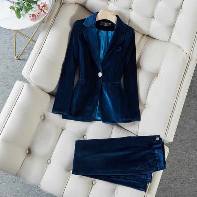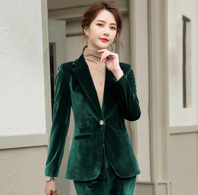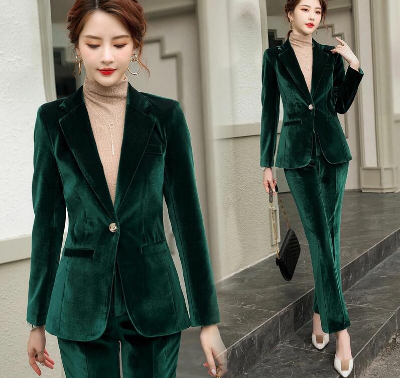 ベロア ベルベット レディーススーツ 2点セット 上下セット 一つボタンスーツ セレモニーフォーマル カジュアル パーティー スーツ ジャケット+パンツ S M L LL 3L 4L