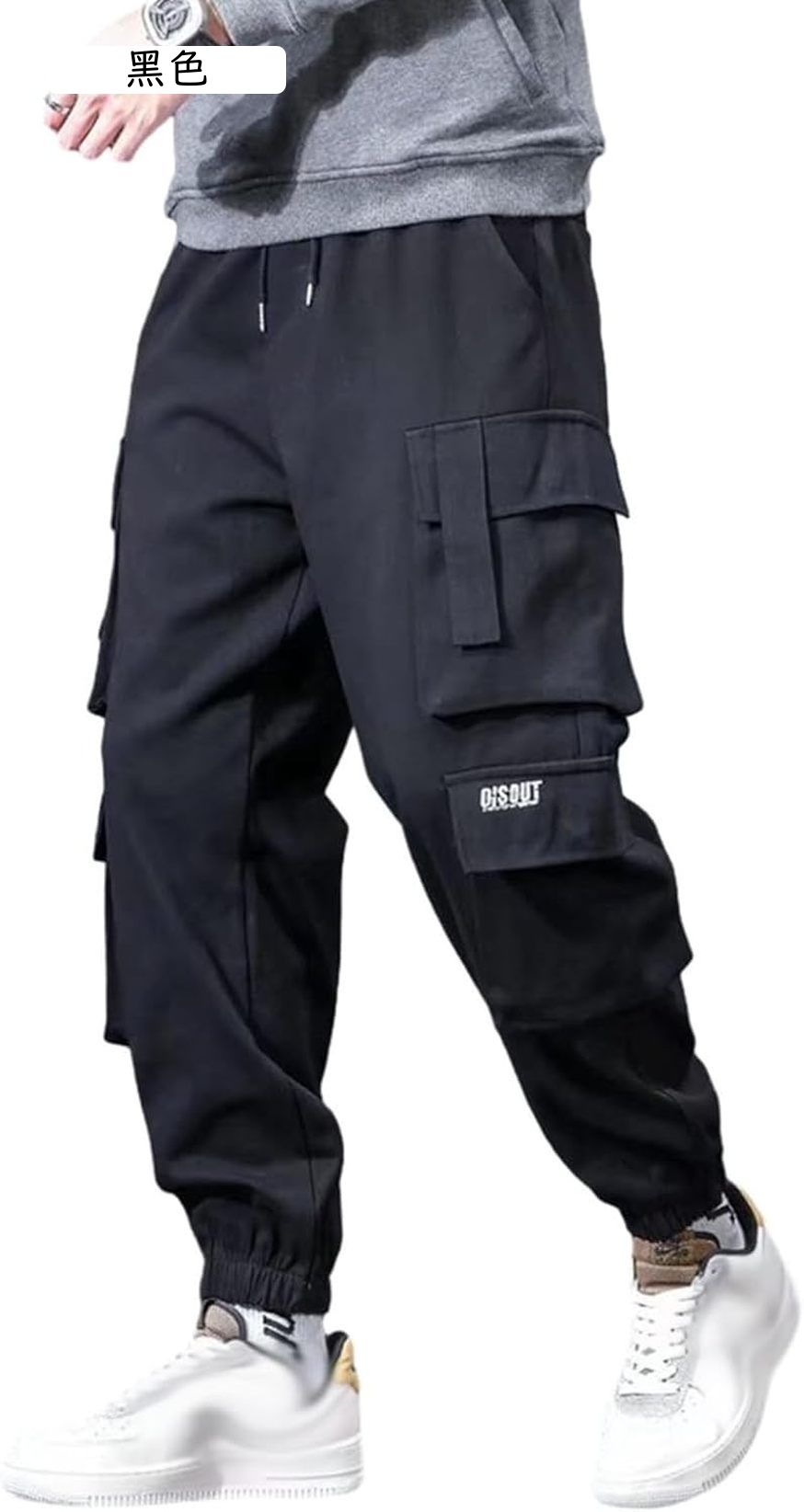 ズボン メンズ カーゴパンツ 作業パンツ ロングパンツ リブ裾 秋冬 ビッグシルエット ウエストゴム紐 ポケット付き ワイドパンツ 袴パンツ ボトムス かっこいい お洒落 原宿 ダンス 韓国 ファッシ