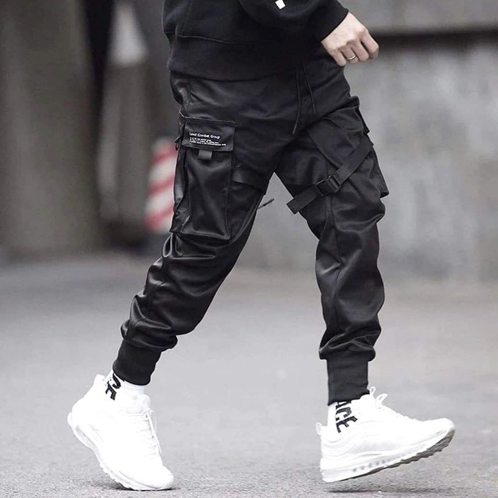 サイドに実用的なポケットが付いたアイスシルク製のメンズカーゴパンツ!調整可能なサイズ展開で幅広い体型に対応!