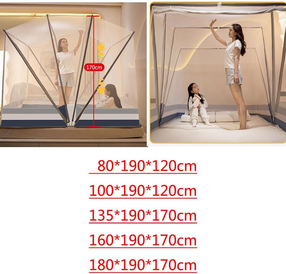 【製品情報】グラスファイバー製ブラケットサポート、頑丈で耐久性がある。80*190cm,100*190cm,135*190cm,160*190cm,180*190cm。重量:約1.9kg。不安を解消!安心した睡眠 全体で囲まれた細かいネットが蚊やムカデの侵入をブロック!ネットは通気性が良く、中は熱がこもりません!