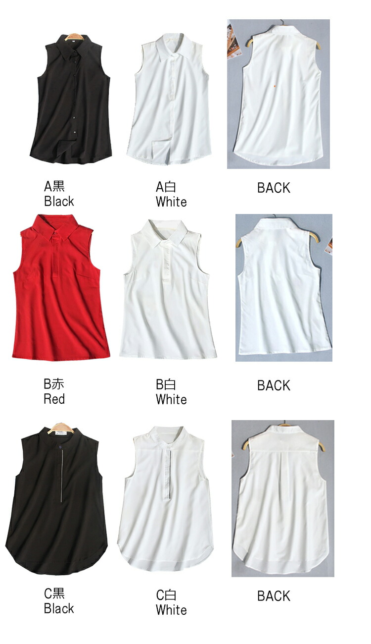 ノースリーブ ブラウス レディース シャツ トップス ノースリーブ シンプル 無地 夏物 夏物 通勤 オフィス レギュラーカラー 襟付き vネック 春 夏 選べる4タイプ