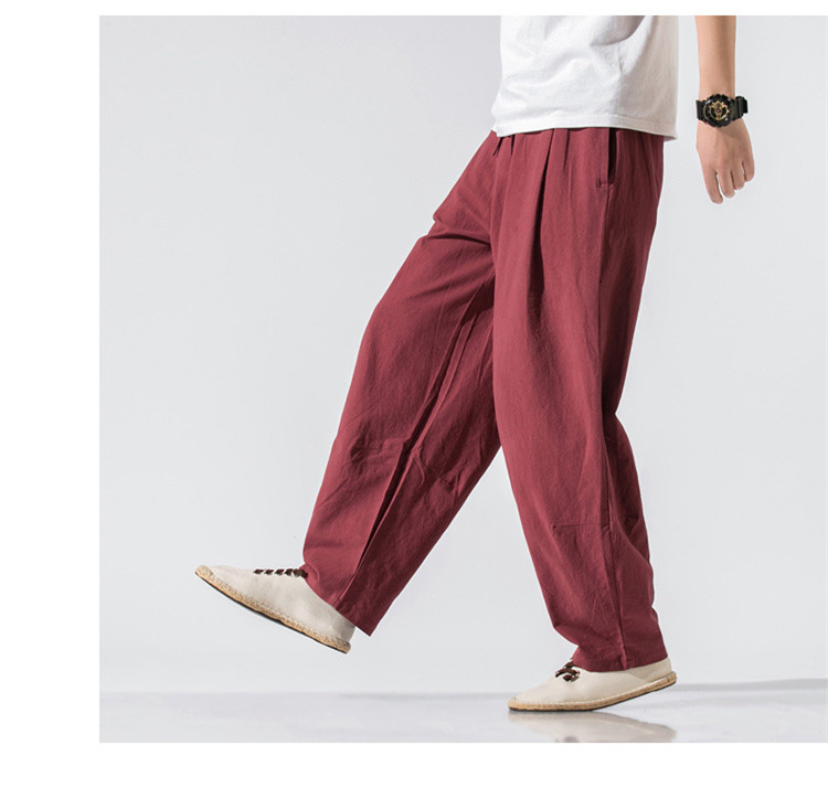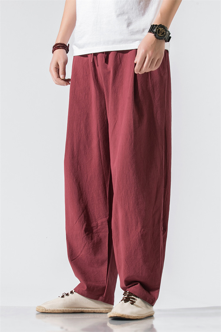 パンツ メンズ ボトムス ズボン 長ズボン ワイドパンツ ワイド ロングパンツ ロング丈 膝下 ひざ下 ウエストゴム 薄手 無地 楽ちん 大きいサイズ ゆったり 夏 リネン素材 サルエルパンツ