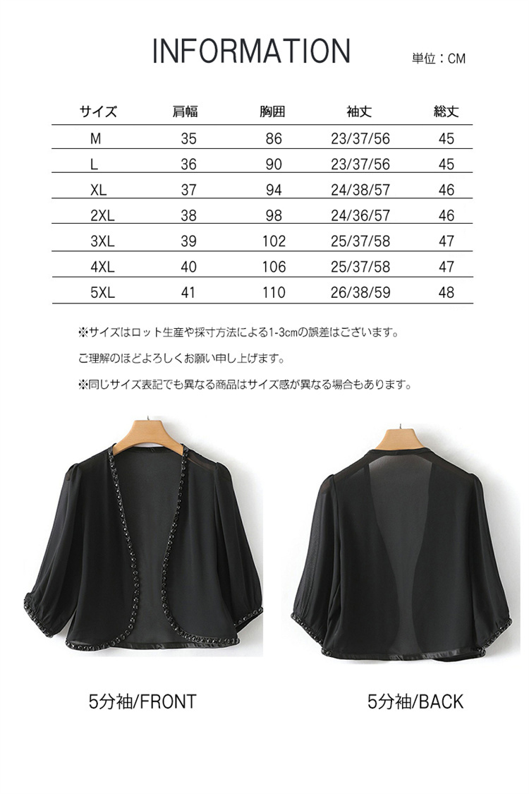 ボレロ 結婚式ボレロ ワンピース 結婚式 フォーマル パーティーボレロ ドレス お呼ばれボレロ ジャケット シフォン 半袖 五分袖 長袖 レディースショール パーティ 黒 大きいサイズ 20代30代4