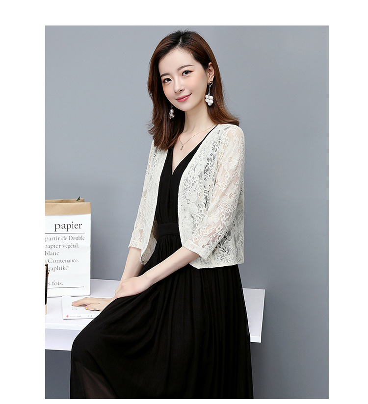 ※お取り扱い前に、商品付属タグの記載もご確認下さい。特徴※ワンピースやドレスと合わせやすいレースデザインのボレロ。フラワーモチーフのレースは、大人可愛いスタイルを叶えます。※半袖/七分袖/長袖3丈が選べる、気になる二の腕もさりげなくカバー。レースの透け感がきれいめシルエットを演出します。※総レースのフェミニンでエレガントな大人可愛いパーティーボレロです。※使わない時は折り畳んでコンパクトに収納できるのも魅力です。※結婚式や二次会、パーティー、発表会、普段のワンピースの羽織りなど、あらゆる場面でマルチに活躍してくれます。平日着用でもOK!